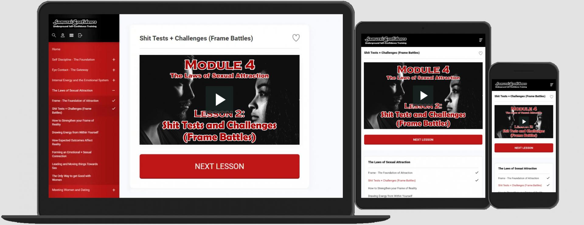 There are 3 full modules in the course dedicated to mastering your dating life. But it's all also rooted in the fundamentals and connected to everything else in the course, with the emphasis on mastery over yourself, and going through the kind of process that will actually help you to achieve real lasting success and confidence with women in the real world. This includes a deep understanding of female psychology and the psychology of attraction, as well as exact step by step instructions to master this on all levels.